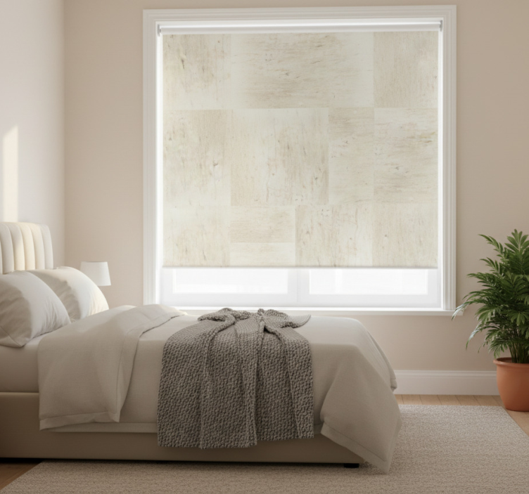Estor enrollable gris con patrón de piedra elegante