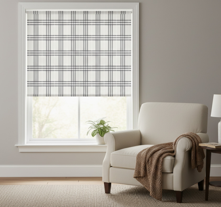 Estor enrollable gris con patrón entrelazado