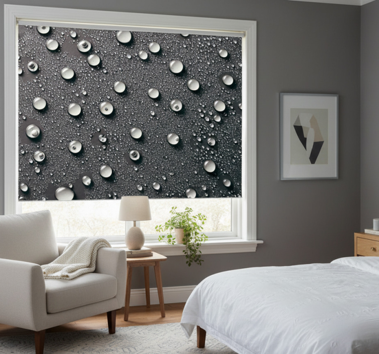 Estor enrollable gris fondo de baño gris con burbujas