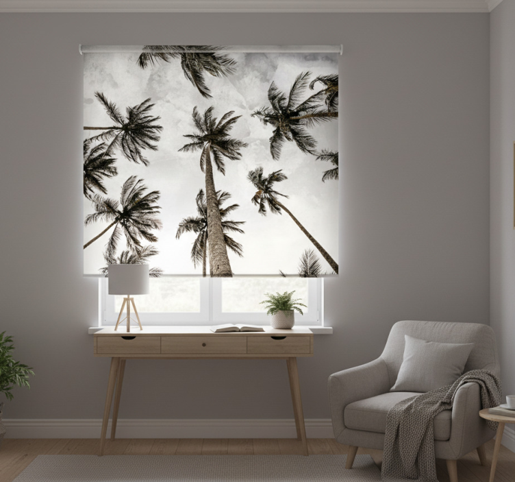 Estor enrollable gris fotografía en ángulo bajo de palmeras