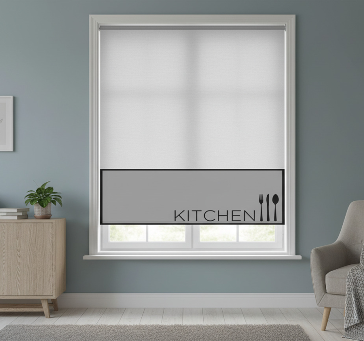 Estor enrollable gris para cocina moderna