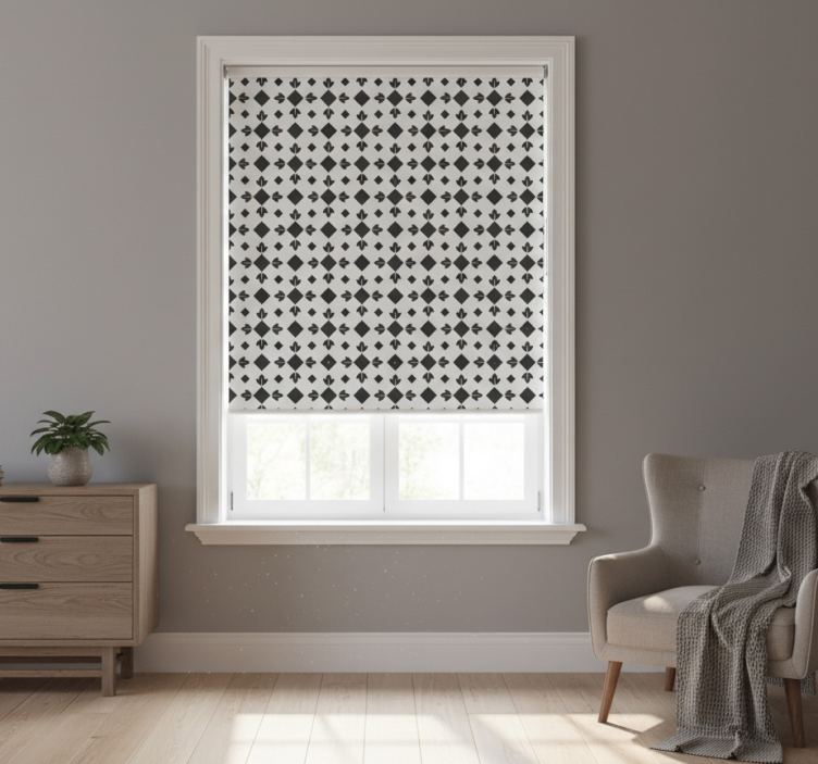 Estor enrollable habitación baldosas en blanco y negro