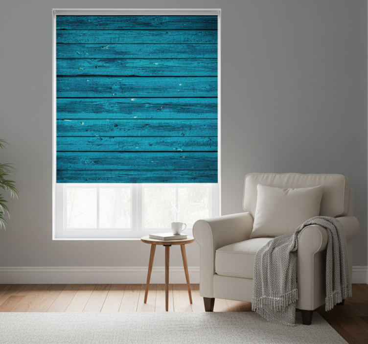 Estor enrollable habitación madera azul