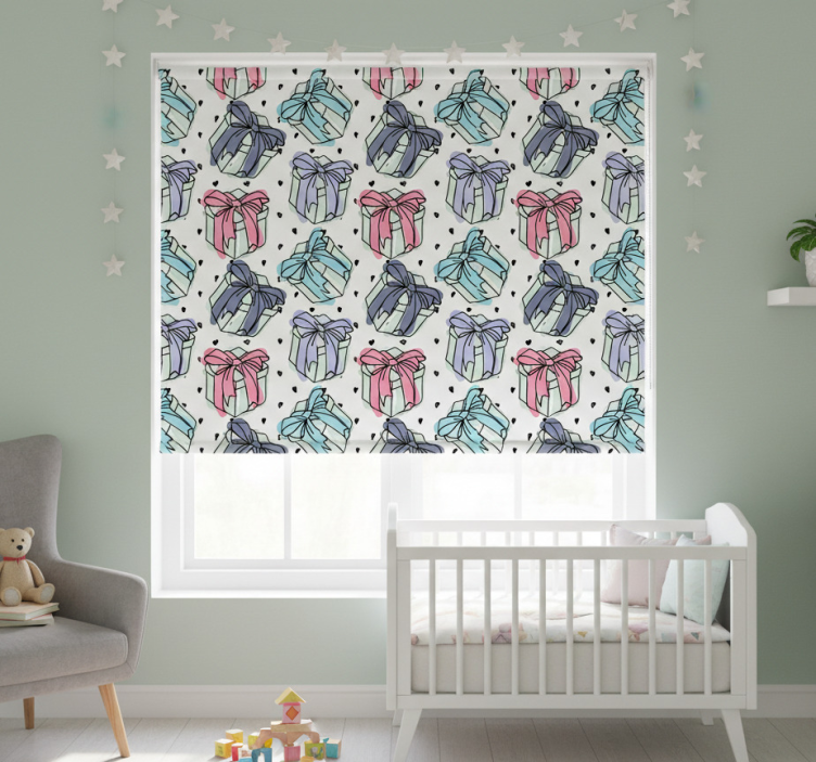 Estor enrollable infantil cajas de regalo con corazones