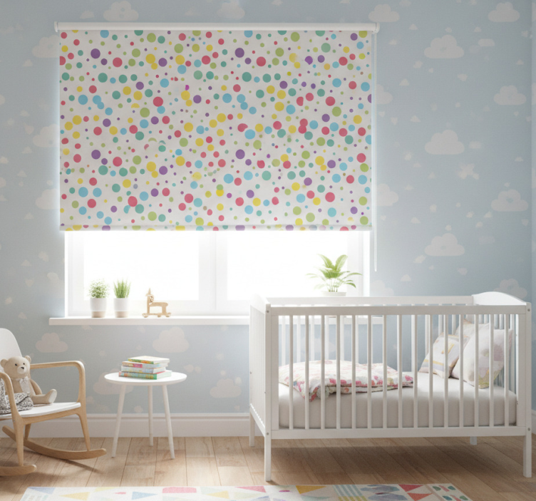 Referencia: E7058Transforma la habitación de tus pequeños con el estor enrollable infantil con estampado de lunares coloridos, un diseño alegre y vibrante que captura la esencia de la infancia. Con un fondo suave adornado con lunares en una variedad de colores llamativos, este estor no solo embellece el espacio, sino que también aporta un toque de diversión y creatividad. ¡Ideal para estimular la imaginación y hacer que cada día sea especial!