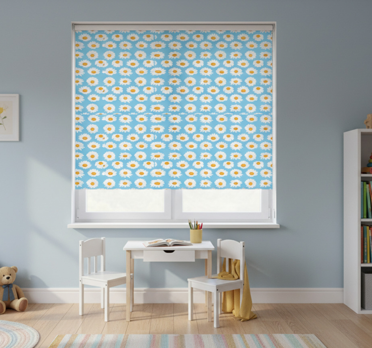 Estor enrollable infantil con estampado de margaritas sobre fondo