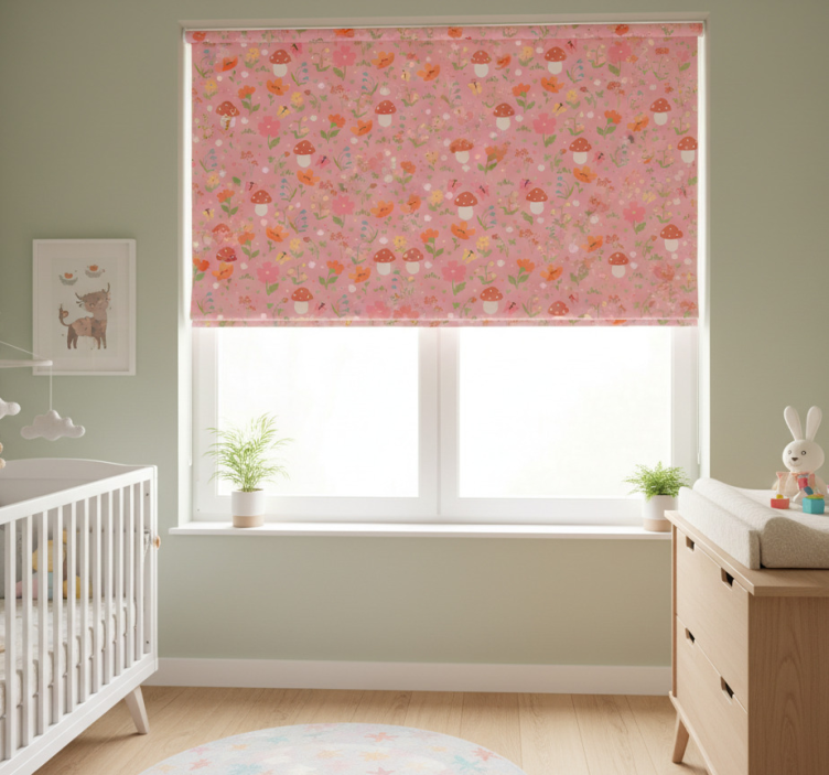 Estor enrollable infantil con patrón de setas florales