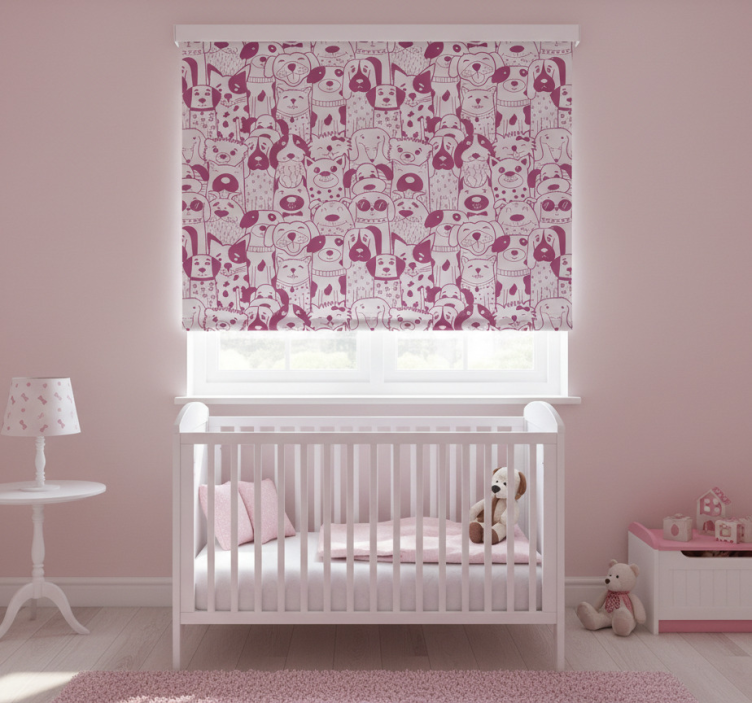 Estor enrollable infantil dibujo de perros rosas