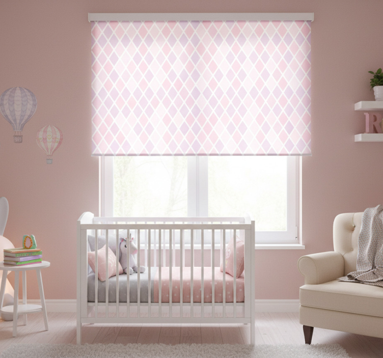 Estor enrollable infantil diseño de rombos rosa y blanco