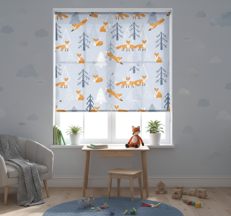Estor enrollable infantil diseño de zorros en el bosque