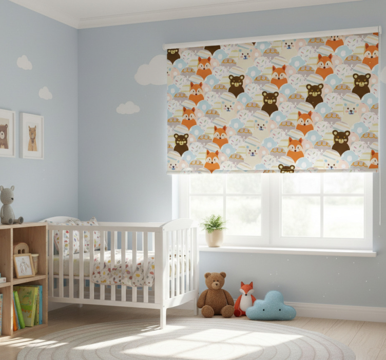 Estor enrollable infantil diseño patchwork oso y zorro