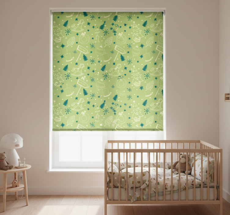 Referencia: E6971El Estor enrollable infantil elementos navideños verdes es una maravillosa adición para la habitación de los más pequeños. Su diseño alegre presenta encantadores elementos navideños en tonos verdes que evocan la magia de la temporada. Con un estilo festivo que incluye motivos de copos de nieve y árboles de Navidad, este estor transforma cualquier espacio en un rincón lleno de alegría y creatividad. ¡Ideal para inspirar la imaginación de los niños!