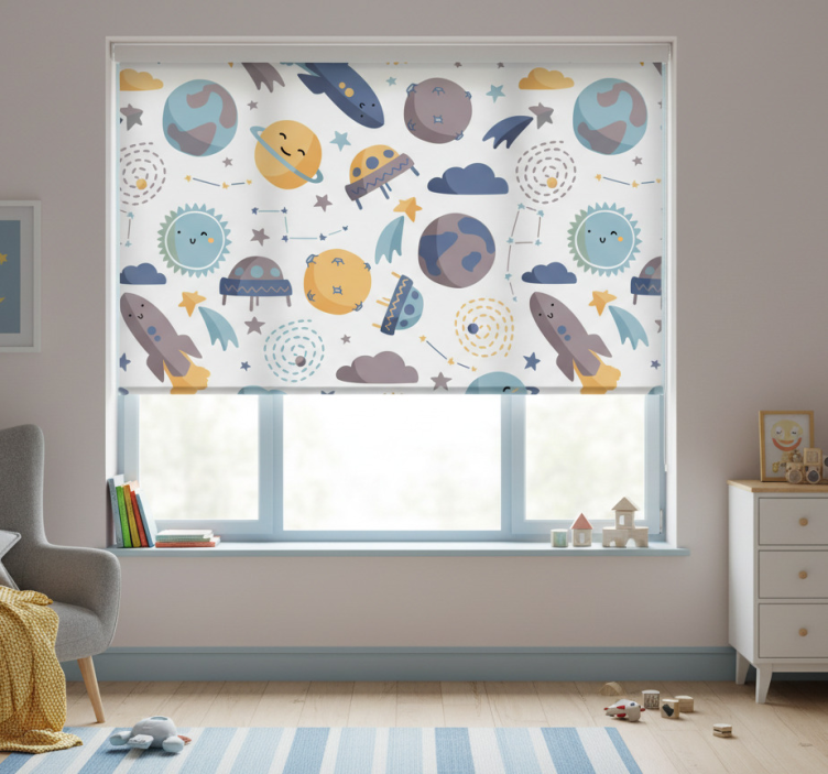 Referencia: E7194Descubre el encantador Estor enrollable infantil espacio feliz, diseñado especialmente para iluminar y alegrar la habitación de los más pequeños. Con un diseño divertido y colorido, este estor presenta motivos que evocan un mundo de fantasía, lleno de estrellas y nubes suaves, ideales para estimular la imaginación. Su fácil montaje en 2 clics y su fácil limpieza hacen de este producto una opción práctica y atractiva para los padres. ¡Es el complemento perfecto para cualquier habitación infantil!