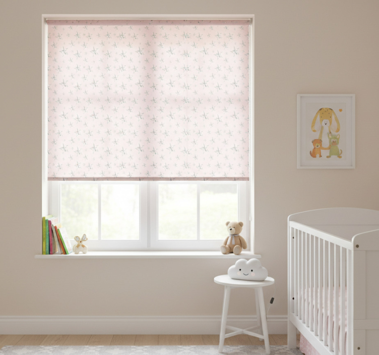 Estor enrollable infantil estrellas blancas fondo rosa