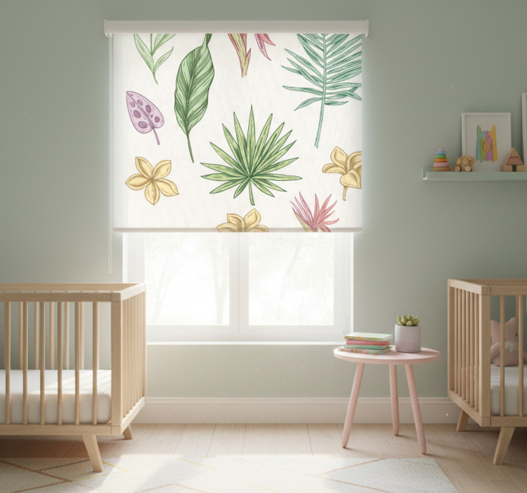 Referencia: E7222Descubre el encantador Estor enrollable infantil flores y palmeras, un diseño que transforma cualquier habitación en un paraíso tropical. Con hermosas ilustraciones de flores vibrantes y palmeras que evocan un ambiente alegre y fresco, este estor es la elección perfecta para iluminar el espacio de los más pequeños. Su estética colorida y divertida no solo embellece la habitación, sino que también crea un ambiente acogedor y estimulante.