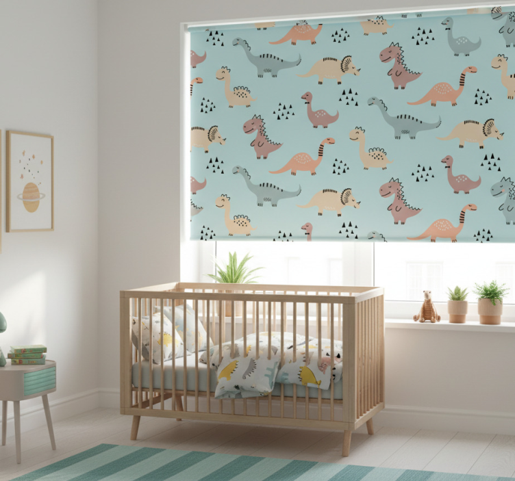 Estor enrollable infantil fondo azul con dinosaurios