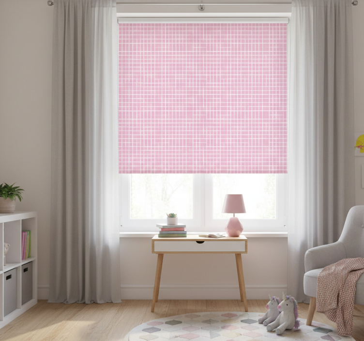 Estor enrollable infantil líneas rosas y blancas