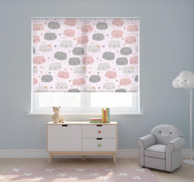 Estor enrollable infantil gatitos grises y rosas
