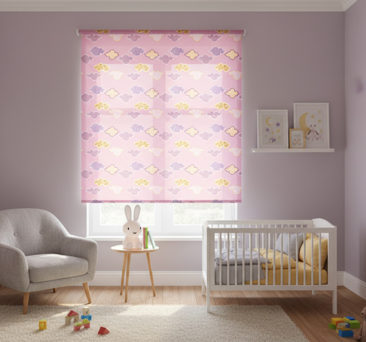 Estor enrollable infantil diseño nubes rosas