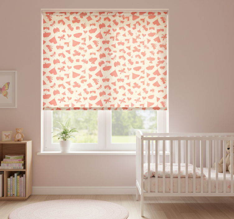 Estor enrollable infantil patrón abstracto mariposas rosas