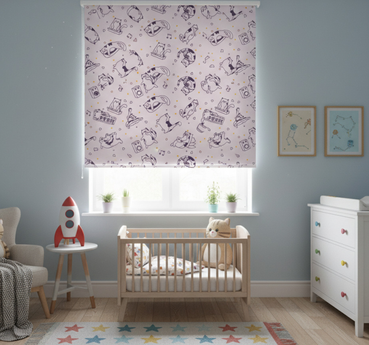Estor enrollable infantil patrón banda de gatos músicos