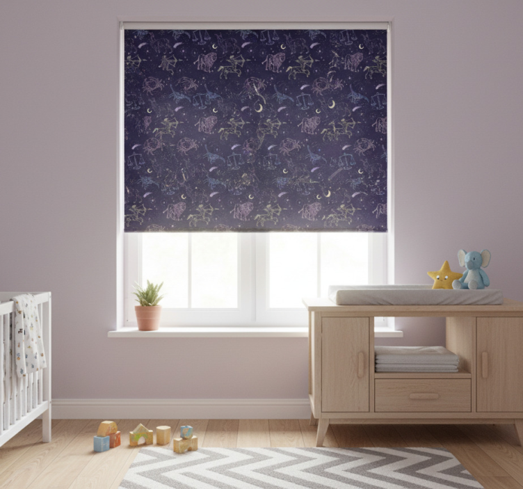 Referencia: E7127Descubre el Estor enrollable infantil patrón constelación, un diseño encantador que iluminará la habitación de los más pequeños. Con un hermoso patrón de constelaciones, este estor combina colores suaves y alegres que evocan un cielo estrellado, creando un ambiente mágico y acogedor. Su diseño no solo es atractivo visualmente, sino que también es funcional, permitiendo regular la luz y la privacidad de manera eficiente.