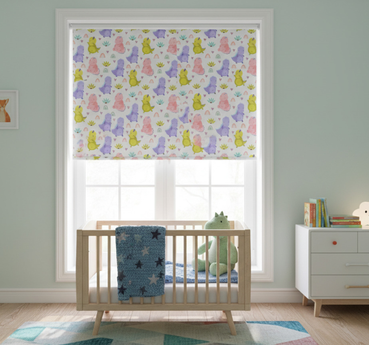 Estor enrollable infantil patrón de dinosaurios coloridos