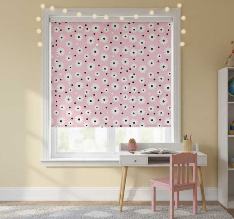 Estor enrollable infantil flores con puntos negros