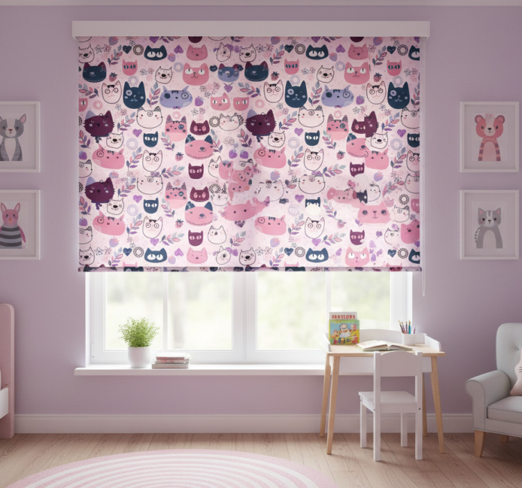 Estor enrollable infantil patrón de gatos rosas
