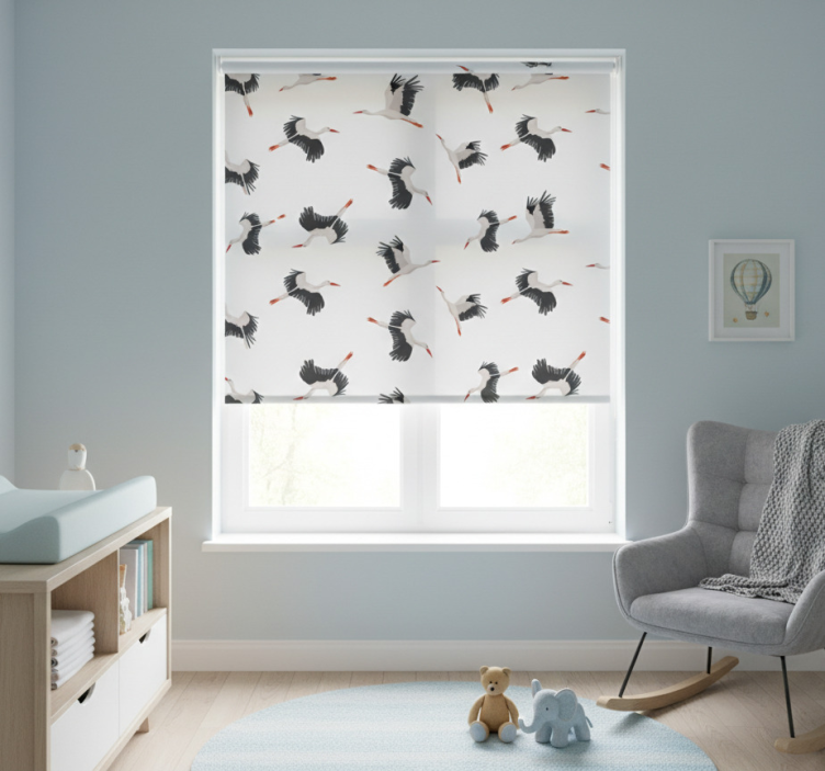 Referencia: E6863Descubre el encantador estor enrollable infantil patrón de grúas voladoras, un diseño que traerá alegría y color a la habitación de tus pequeños. Con un divertido patrón de grúas voladoras en tonos vibrantes, este estor no solo embellece el espacio, sino que también ofrece una atmósfera lúdica y alegre, perfecta para estimular la imaginación de los niños. ¡Es el toque perfecto para cualquier habitación infantil!