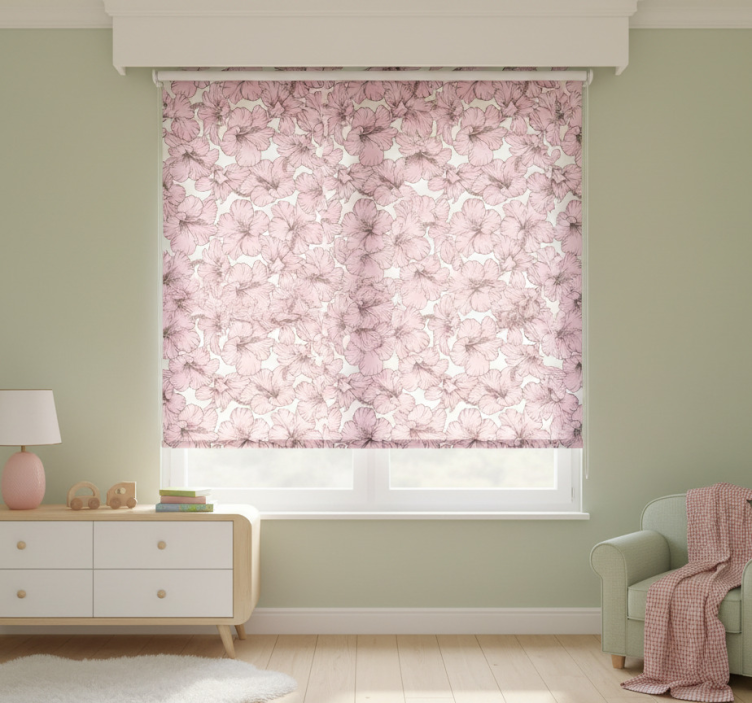 Estor enrollable infantil patrón hibisco rosa