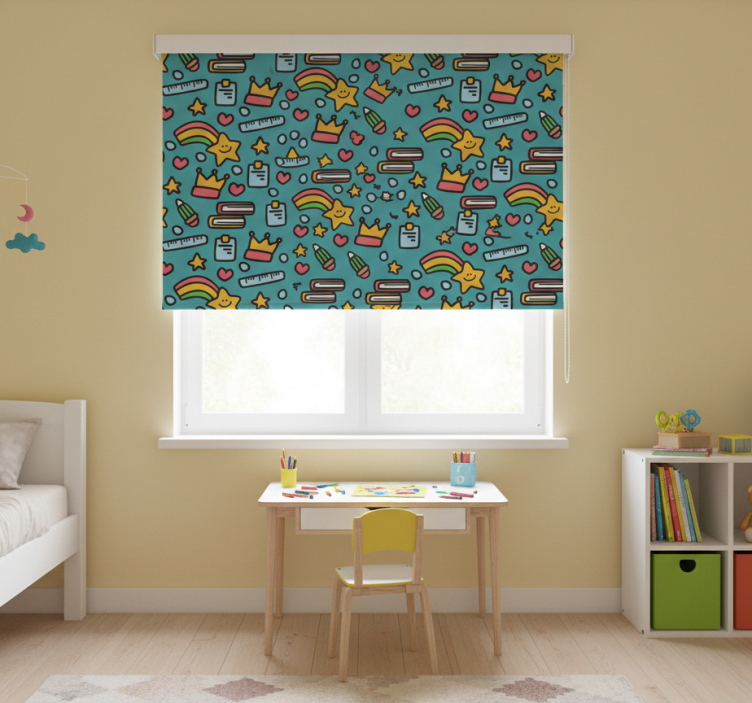Referencia: E7141Descubre el encanto de nuestro Estor enrollable infantil patrón infantil kawaii, un diseño que alegra cualquier habitación infantil. Con sus adorables personajes y colores vibrantes, este estor transforma el ambiente en un mundo mágico lleno de alegría y creatividad. Ideal para estimular la imaginación de los más pequeños, su diseño es una explosión de ternura que complementa la decoración de forma encantadora.
