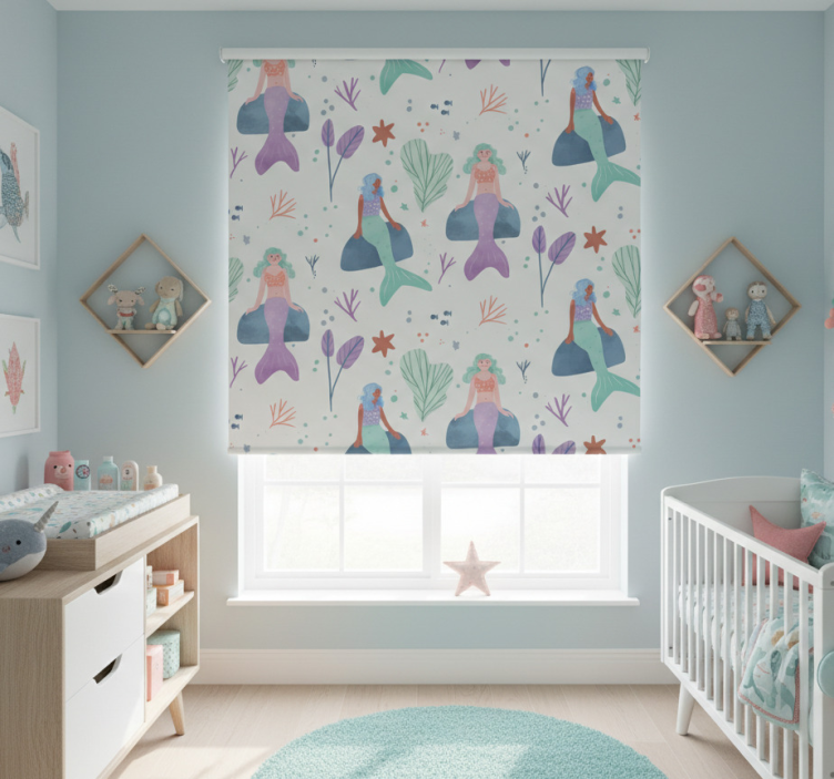 Referencia: E7120Descubre la magia del Estor enrollable infantil sirena sentada en roca, un elemento decorativo que transformará cualquier habitación infantil en un mundo de fantasía. Este estor cuenta con un diseño encantador que presenta a una sirena sentada en una roca, rodeada de vibrantes colores y detalles que capturan la imaginación de los más pequeños. ¡Imagina cómo brillarán los ojos de tu hijo al ver este maravilloso estor en su habitación!