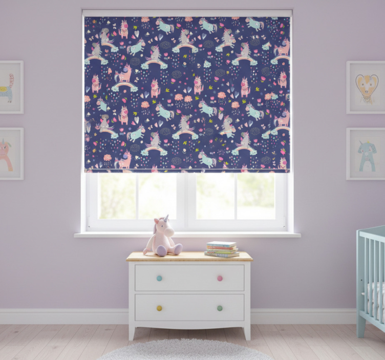 Estor enrollable infantil unicornios coloridos con arcoíris