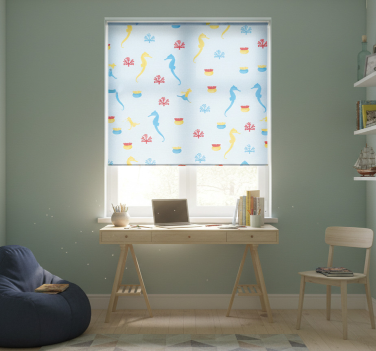 Estor enrollable juvenil caballito de mar y coral