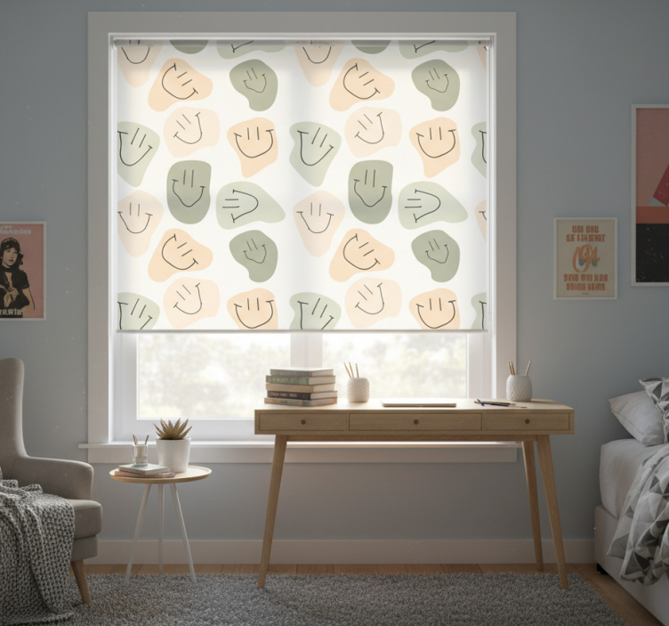 Estor enrollable juvenil caras sonrientes en colores neutros
