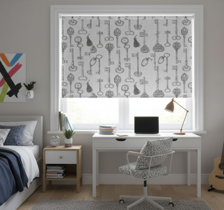 Referencia: E7554El Estor enrollable juvenil diferentes llaves es una opción perfecta para dar un toque moderno y divertido a cualquier habitación juvenil. Con un diseño vibrante y contemporáneo, este estor combina colores alegres y patrones únicos que transforman el espacio, haciéndolo más acogedor y lleno de energía. Su facilidad de uso y limpieza lo convierte en una elección ideal para los más jóvenes, que buscan un ambiente dinámico y lleno de estilo.