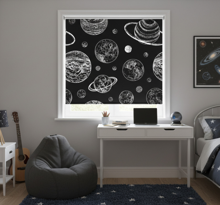 Referencia: E7493Descubre el estor enrollable juvenil espacio en blanco y negro, una pieza de diseño moderno que combina la elegancia del blanco y negro con un estilo juvenil y fresco. Este estor, con su atractivo gráfico, no solo embellece tu habitación, sino que también aporta un toque contemporáneo que se adapta a cualquier espacio. Su fácil montaje en 2 clics, así como su facilidad de limpieza y desmontaje, lo convierten en una opción práctica y funcional para quienes buscan un ambiente acogedor y estilizado.