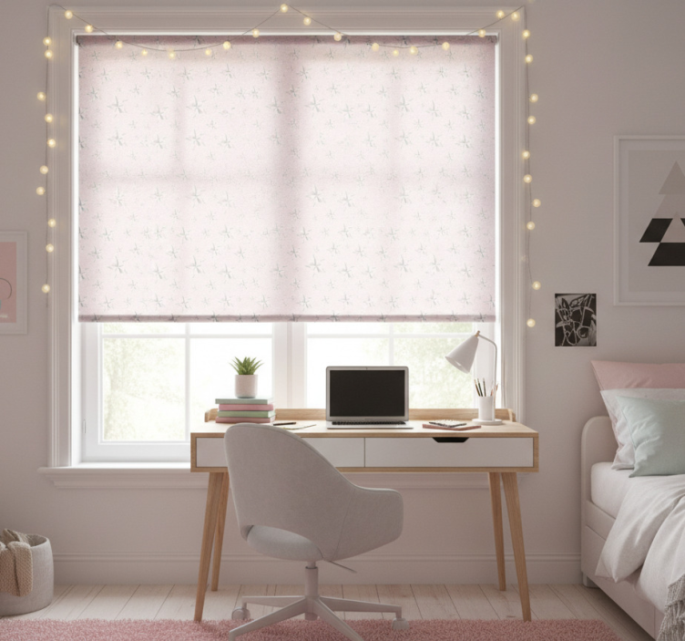 Estor enrollable juvenil estrellas blancas fondo rosa