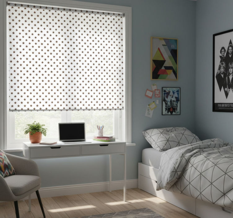 Referencia: E7542Descubre el Estor enrollable juvenil estrellas marrones, un producto que combina estilo y funcionalidad en un diseño encantador. Con un fondo marrón suave decorado con estrellas blancas, este estor aporta un toque juvenil y divertido a cualquier habitación. Su diseño elegante no solo es atractivo, sino que también es práctico, protegiendo tu espacio de la luz solar directa y proporcionando privacidad al bajar la tela. ¡La elección perfecta para iluminar la creatividad de tu hogar!