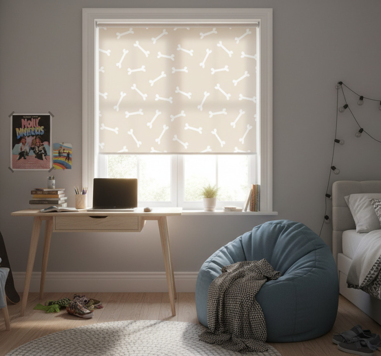 Estor enrollable juvenil huesos de perro sobre fondo beige