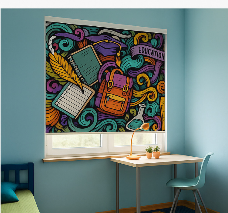 Referencia: E5854¡Descubre el fascinante Estor enrollable juvenil objetos abstractos coloridos! Este diseño vibrante presenta formas geométricas y colores alegres que aportan un toque moderno y fresco a cualquier habitación juvenil. Con su estilo contemporáneo, este estor es perfecto para aquellos que buscan un ambiente divertido y dinámico, ideal para estimular la creatividad y la energía positiva en el espacio.