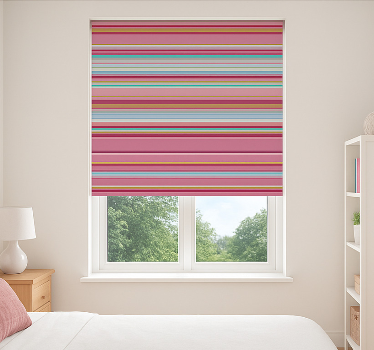 Referencia: E5856Descubre el encanto del Estor enrollable juvenil patrón de rayas rosas, un accesorio que transformará cualquier habitación en un espacio lleno de vida y estilo. Su diseño vibrante presenta un patrón de rayas en tonos rosas que aportan un toque juvenil y alegre, creando un ambiente acogedor y moderno. Ideal para habitaciones de adolescentes o espacios creativos, este estor no solo es visualmente atractivo, sino que también es funcional y práctico.