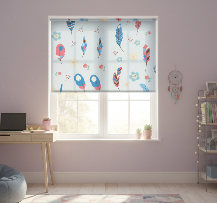Estor enrollable juvenil plumas coloridas