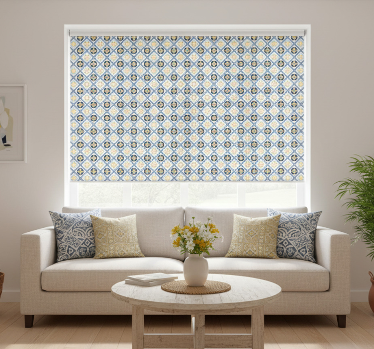 Estor enrollable moderno azulejo portugués azul y amarillo