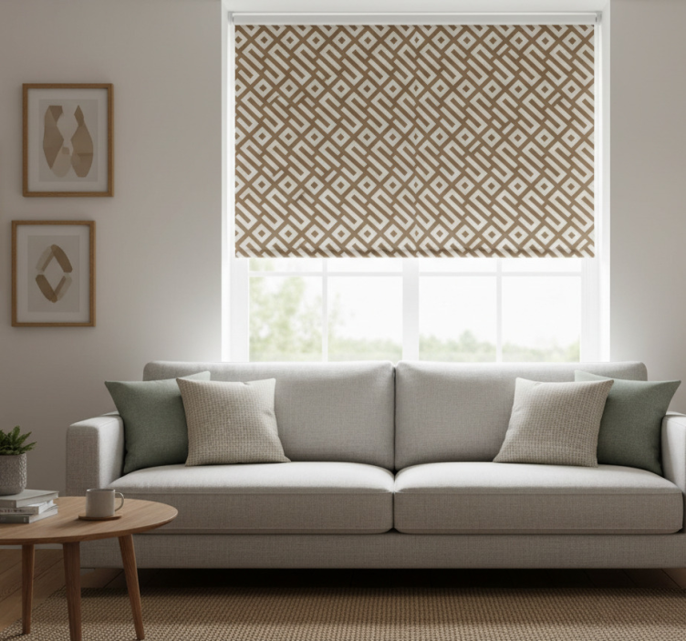 Estor enrollable moderno diseño geométrico en tonos tierra