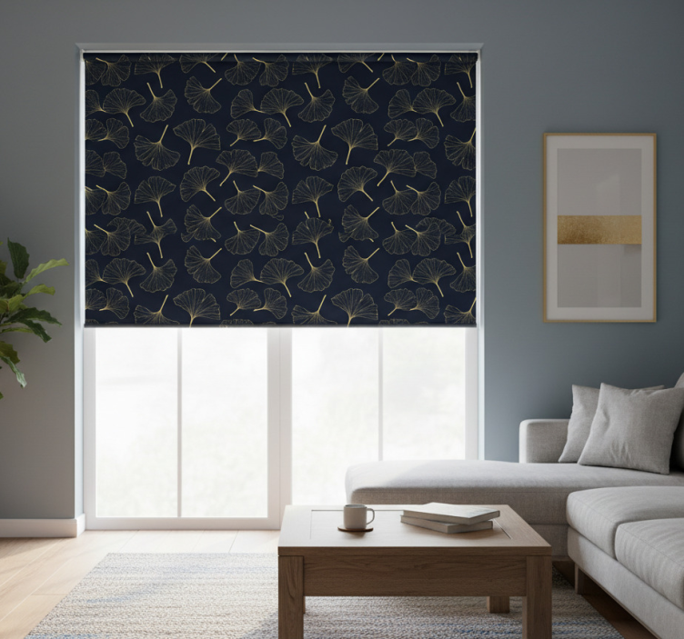 Estor enrollable moderno hojas de ginkgo 3d doradas