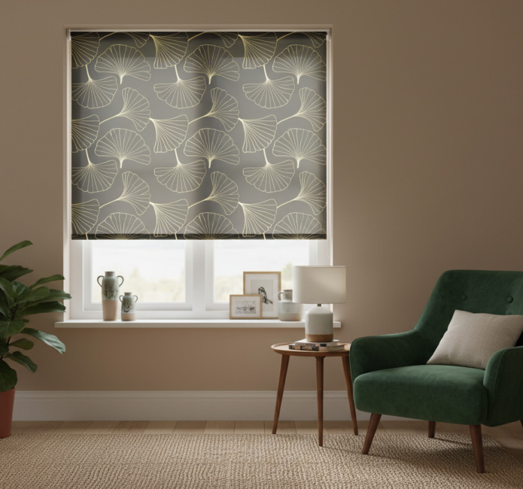Estor enrollable moderno hojas de ginkgo carbón oro