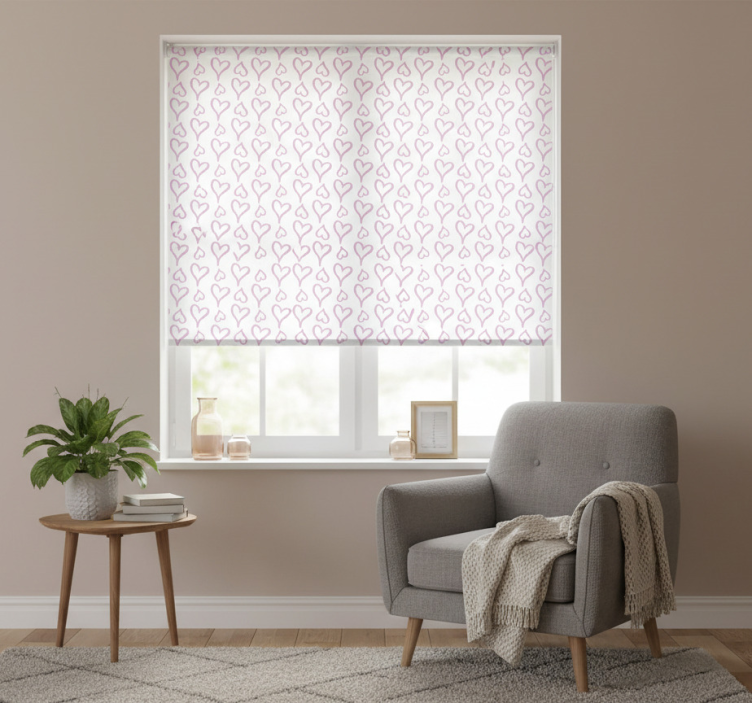 Estor enrollable moderno íconos de corazones rosas