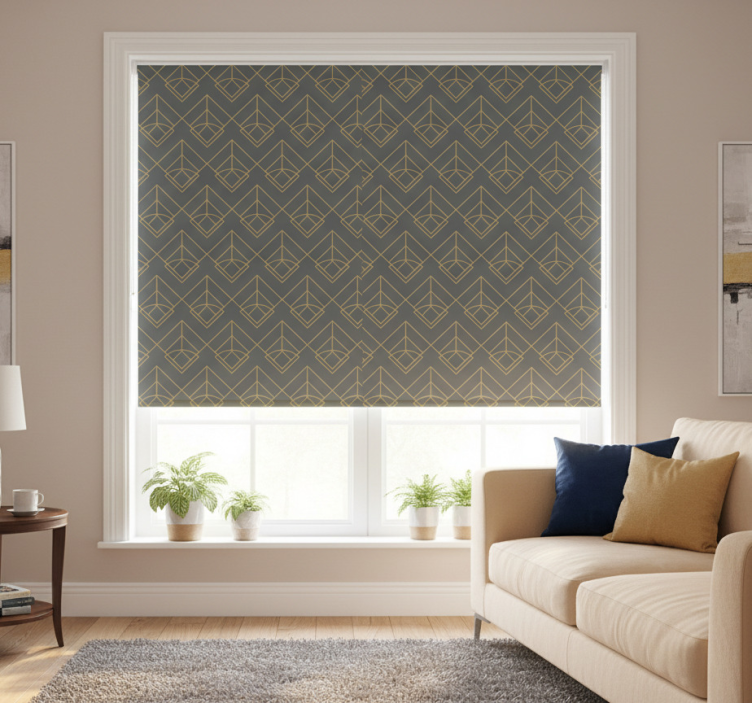Referencia: E7771Descubre el elegante estor enrollable moderno líneas doradas diagonales sobre fondo gris oscuro, una pieza que transforma cualquier espacio con su diseño contemporáneo. Este estor presenta un hermoso patrón de líneas doradas que diagonales sobre un fondo gris oscuro, creando un contraste sofisticado y atractivo que complementa a la perfección tu decoración. Su estilo moderno y minimalista no solo embellece, sino que también añade un toque de lujo a tu hogar.